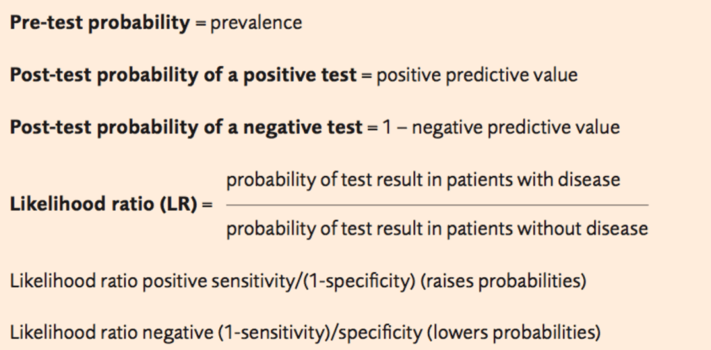 Et viktig begrep å ha i bakhodet før man ser på testene er sensitivitet og spesifisitet. Typisk bør orienterende prøver bestå av tester med høy sensitivitet, da disse er gode på å utelukke sykdom/lidelse. De fleste nevrologisk orienterende prøver har derimot høy spesifisitet, noe som gjør at de er bedre på å si at «her er det sykdom/lidelse» (4). Flere artikler peker på at likelihood ratio (sannsynlighetskvotetest på norsk), som kombinerer både sensitivitet og spesifisitet, er et bedre verktøy for klinisk tolkning (5,6). Dette er noe jeg skal se nærmere på i fremtiden.