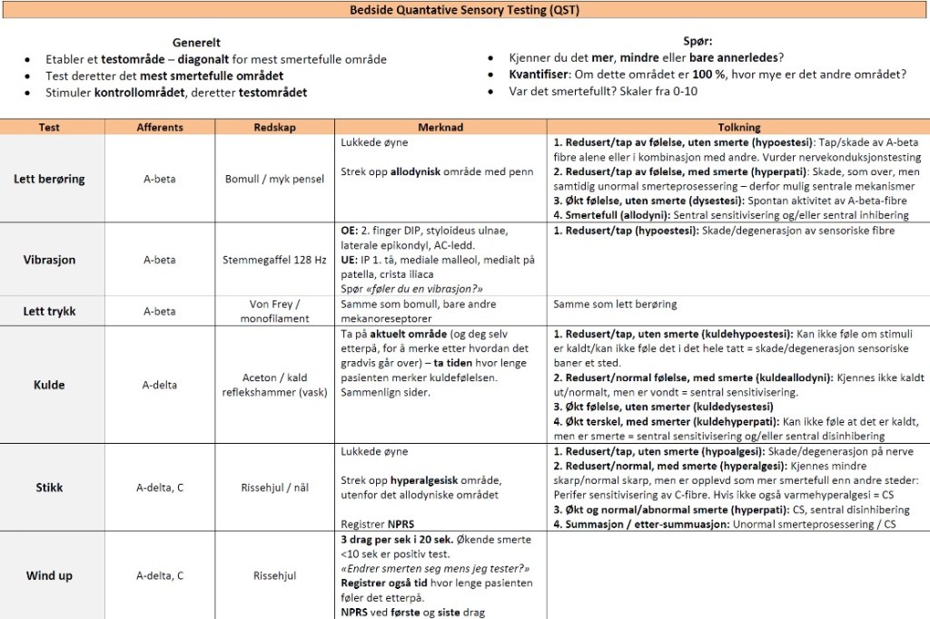 3. Backonja M-M, Walk D, Edwards RR, Sehgal N, Moeller-Bertram T, Wasan A, mfl. Quantitative sensory testing in measurement of neuropathic pain phenomena and other sensory abnormalities. Clin J Pain. september 2009;25(7):641–7.