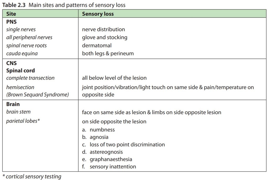 Selv om det kan være vanskelig å tolke hva som eksakt foregår hos pasienten ved test av sensibilitet er det verdifull informasjon hvis pasienten har nedsatt nervefunksjon i et dermatom svarende til andre funn i den nevrologisk orienterende prøven. Dette kan tyde på at affeksjon på nerverotsnivå (13,14).