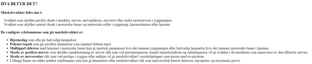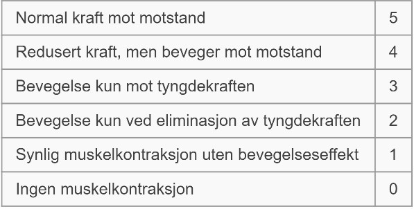5. O’Neill S, Jaszczak SLT, Steffensen AKS, Debrabant B. Using 4+ to grade near-normal muscle strength does not improve agreement. Chiropr Man Ther [Internett]. 10. oktober 2017 [sitert 14. november 2020];25. Tilgjengelig på: https://www.ncbi.nlm.nih.gov/pmc/articles/PMC5633899/