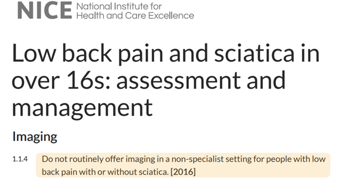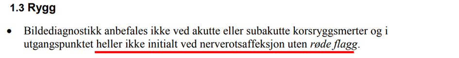 Som vi har vært inne på sier også de Norske Retningslinjene at det ikke anbefales MR initialt ved nerverotsaffeksjon uten røde flagg.