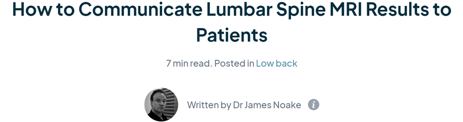 Jeg vil anbefale å lese James Noake sin artikkel på hvordan man kan forklare MR-funn til pasientene.
